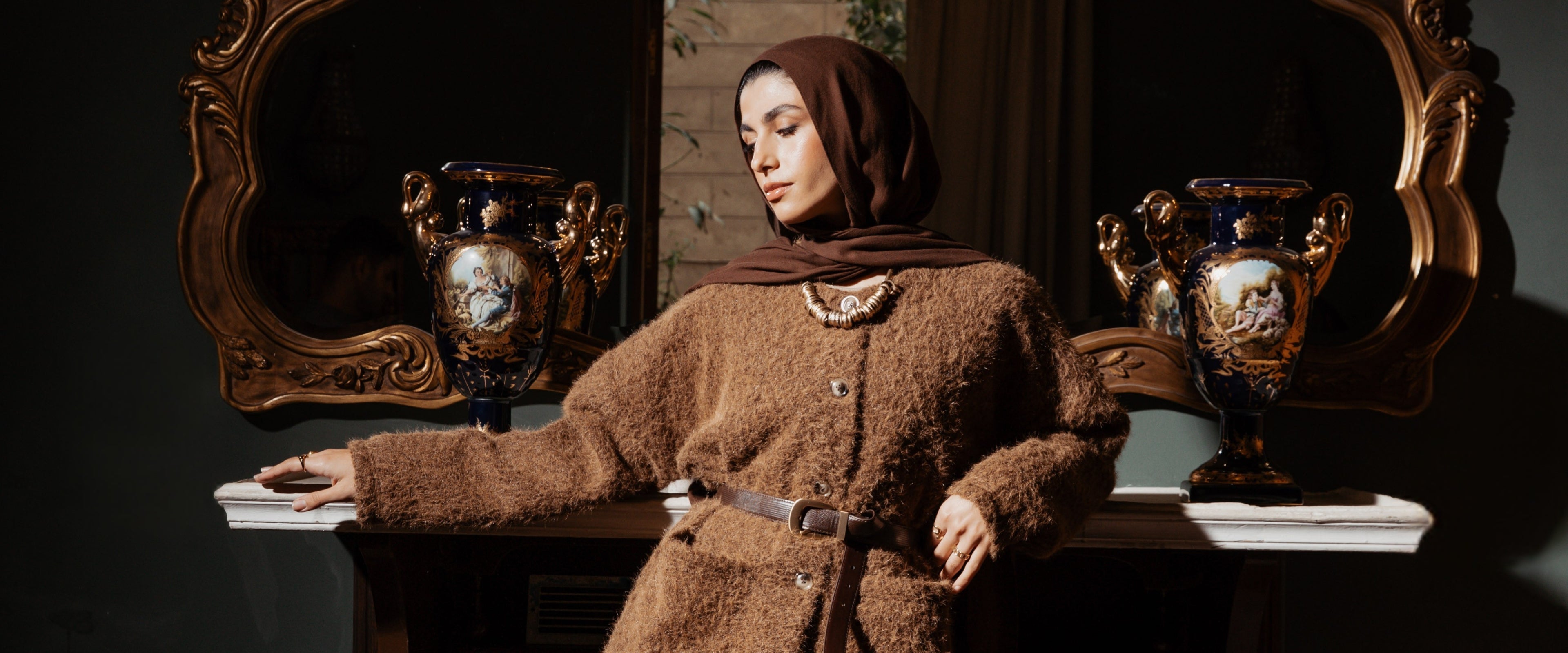 Elegant Wrap Belted Coat -Olive