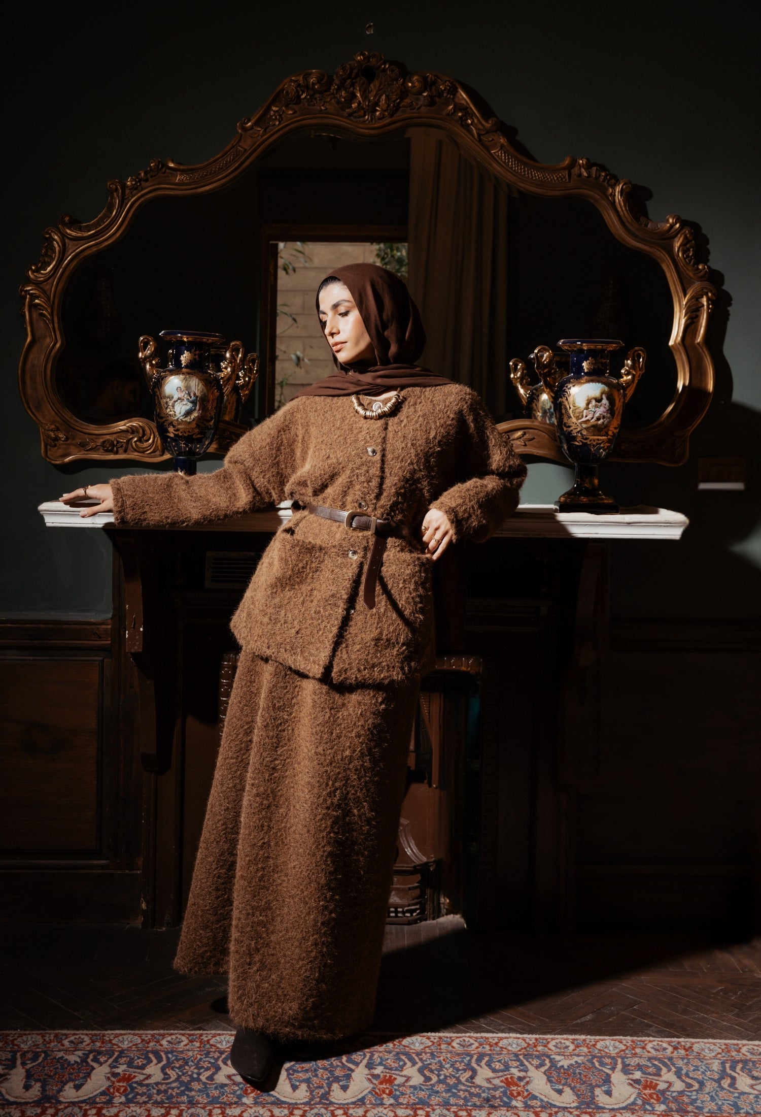 Suede Coat With Scarf- Black